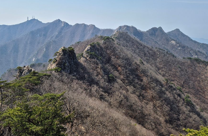 삼불봉에서 관음봉으로 이어지는 능선길이 계룡산 코스 중 가장 아름다운 구간입니다. 동학사에서 곧장 관음봉으로 오르지 않고 굳이 남매탑과 삼불봉을 거쳐야 하는 이유가 바로 이 능선길 때문입니다. 다만 너덜길과 돌뿌리가 많아 밑창이 두꺼운 등산화가 필수입니다.